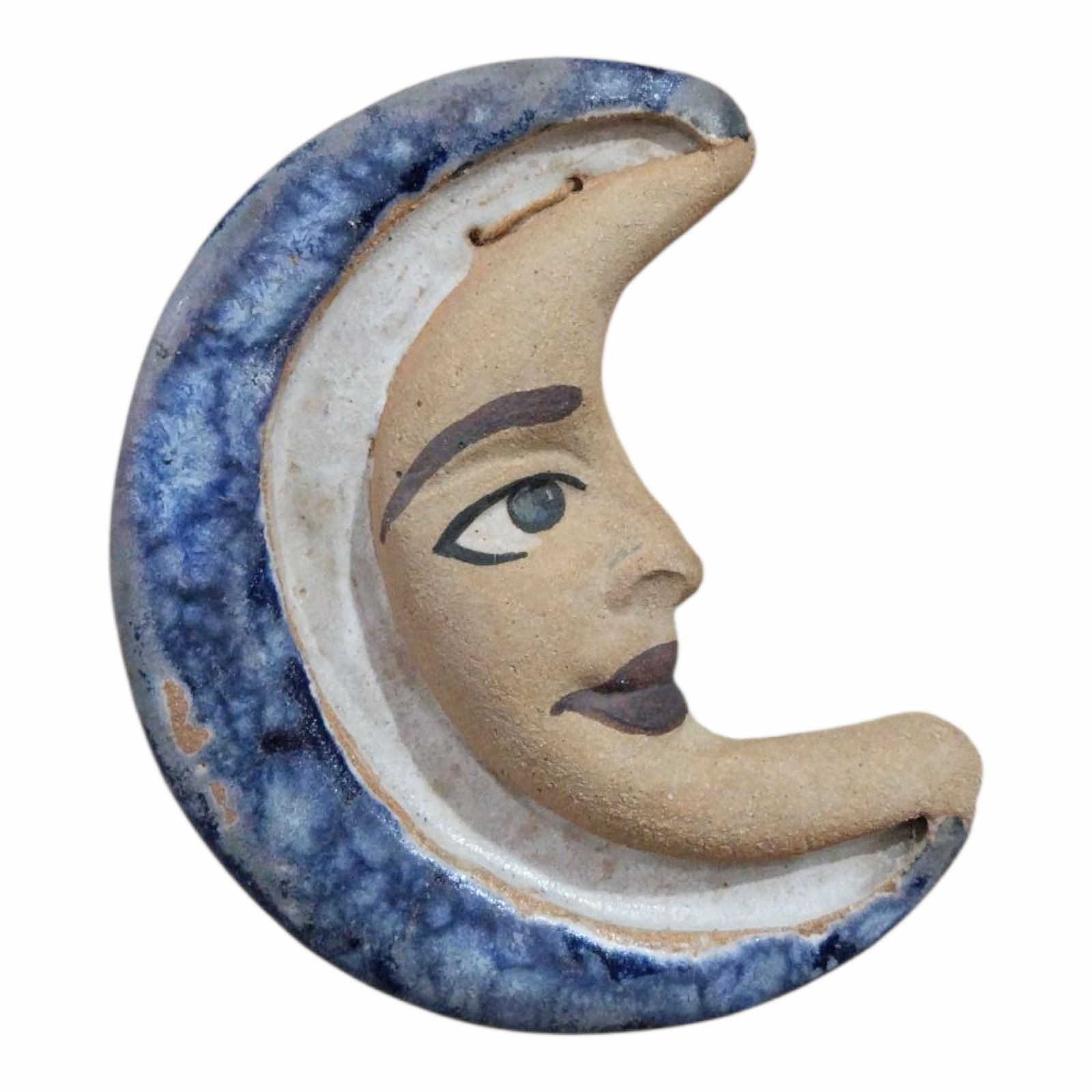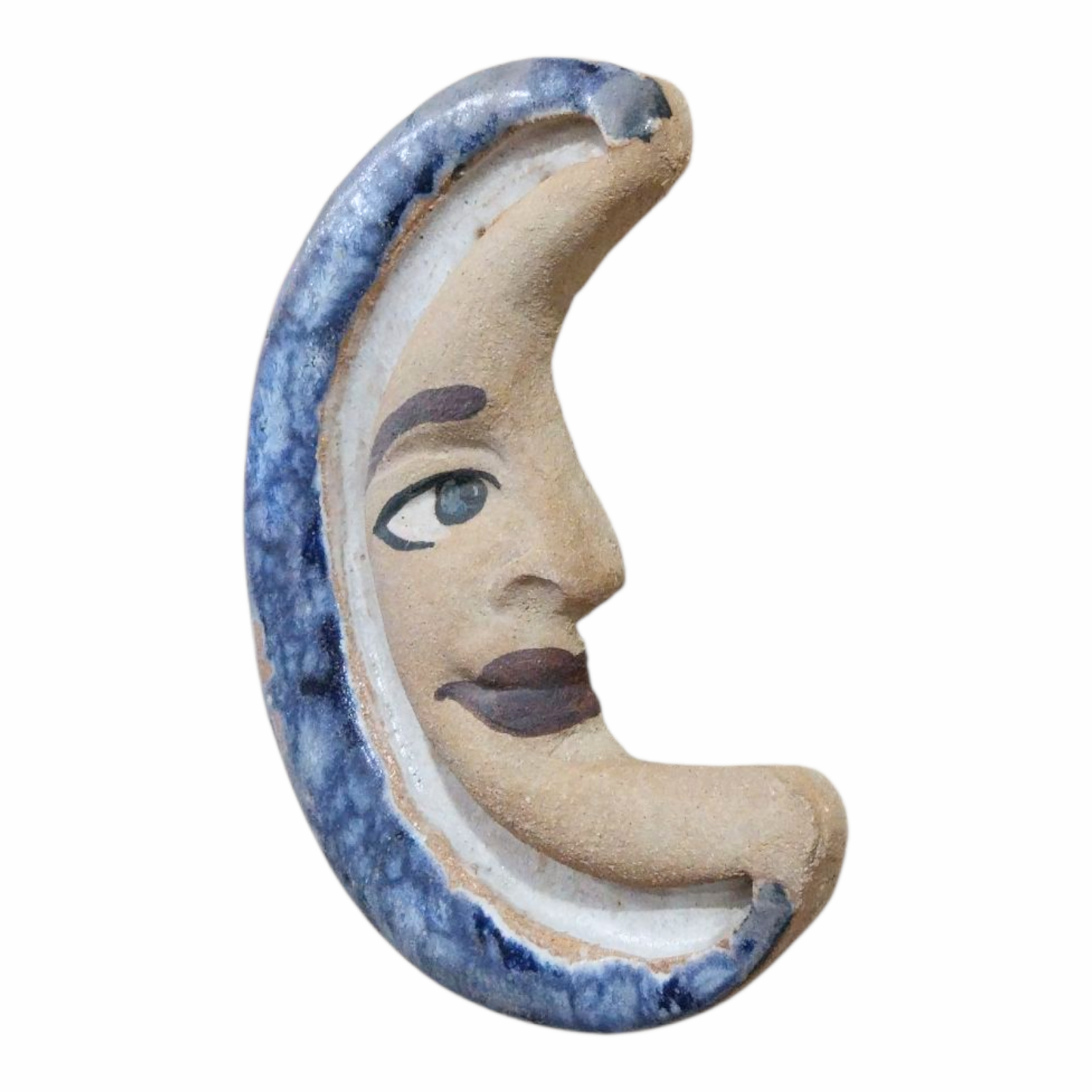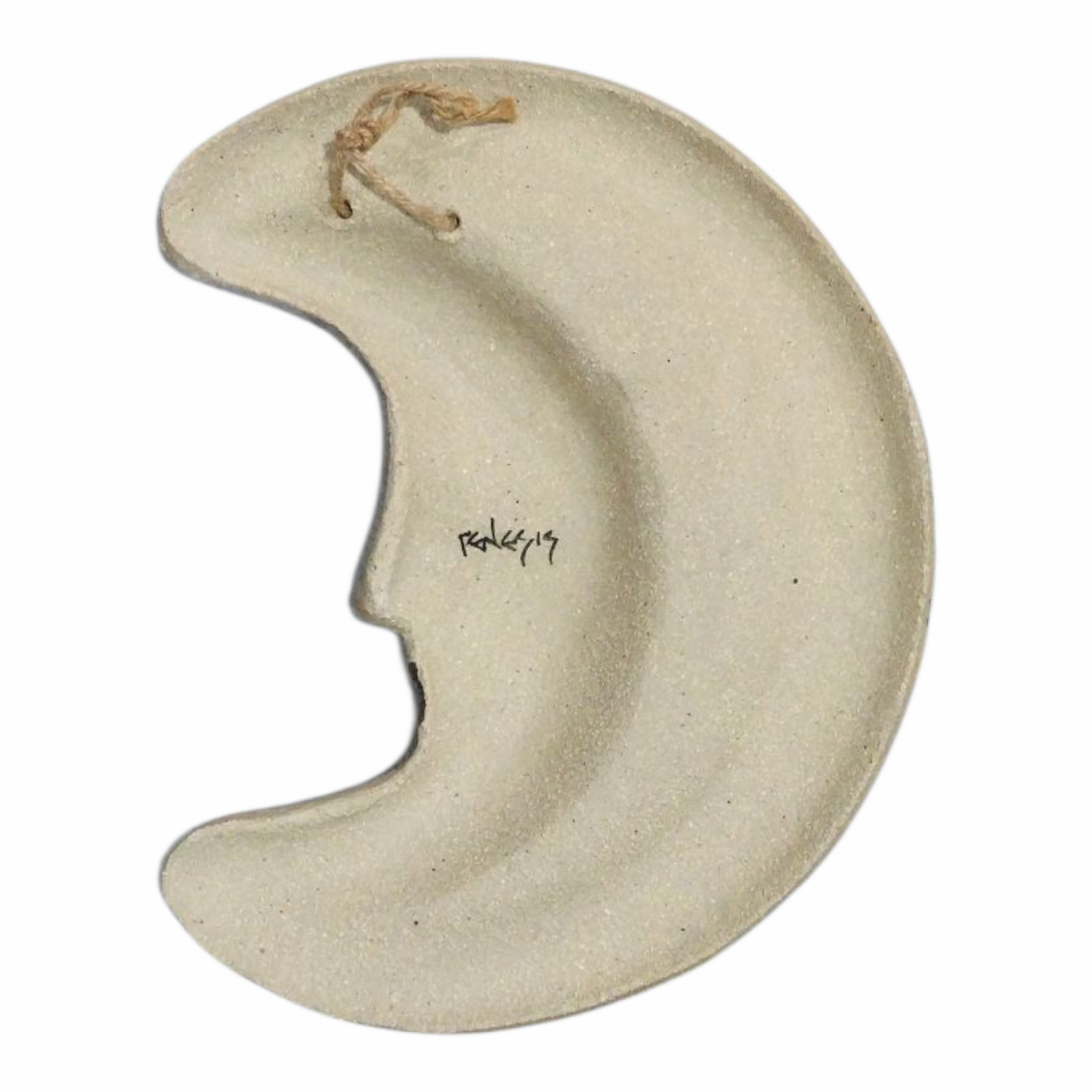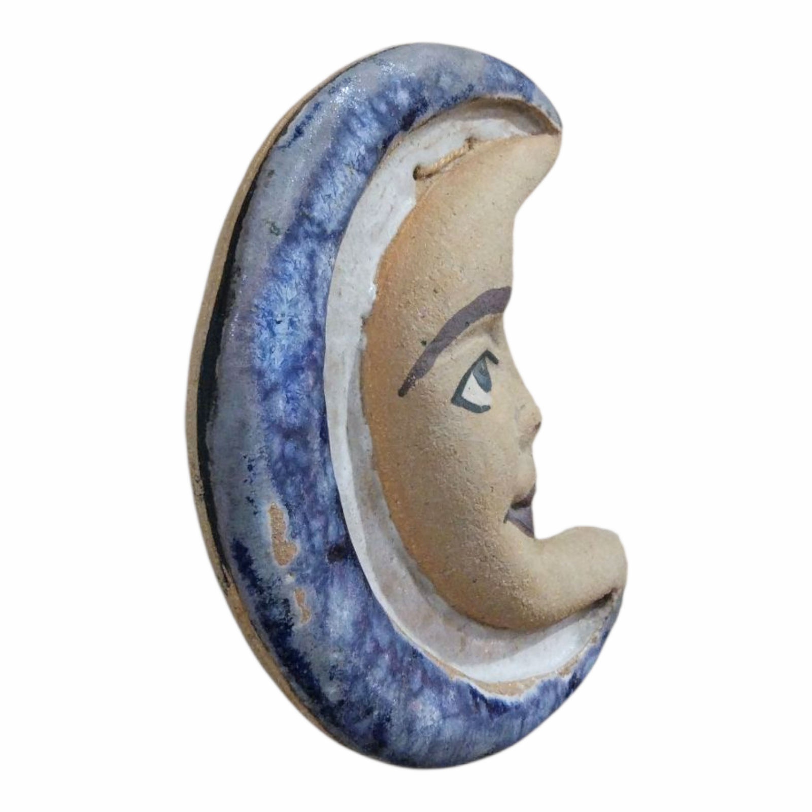 - Bring a touch of celestial magic into your home with the ‘Moonlit Charm’ – Ceramic Wall Relief Sculpture.This handcrafted ceramic wall piece features a crescent moon with peaceful,smilling face,radiating warmth and serenity.