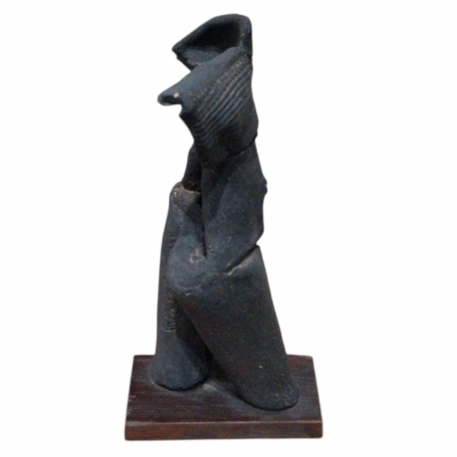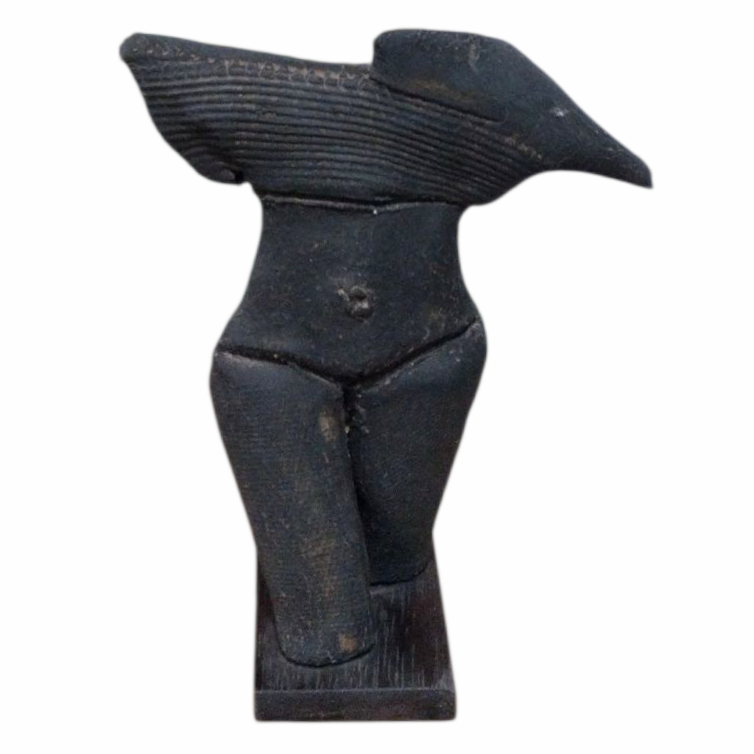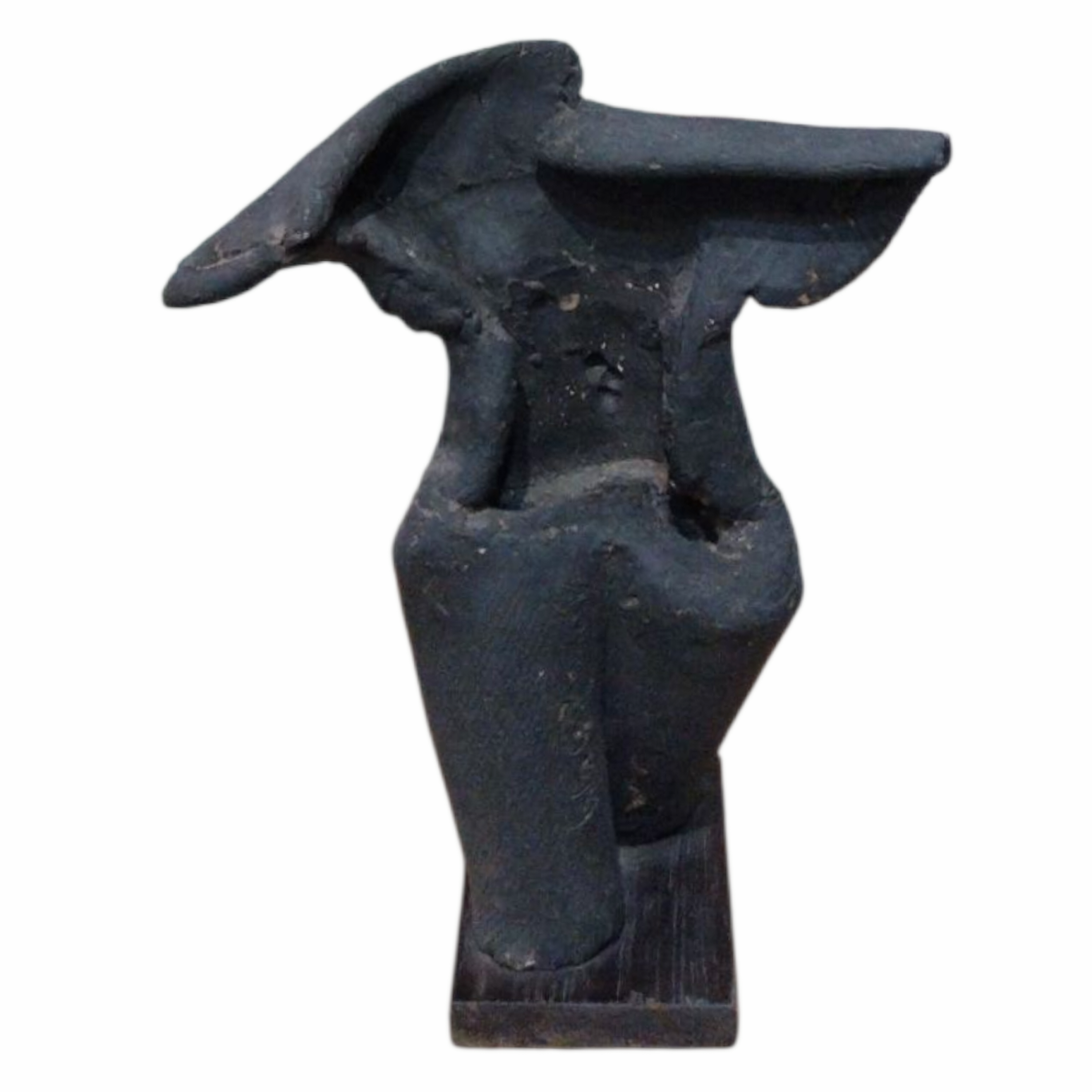 - Handcrafted minimalist ceramic female form in deep black tones,featuring subtle relief texture.