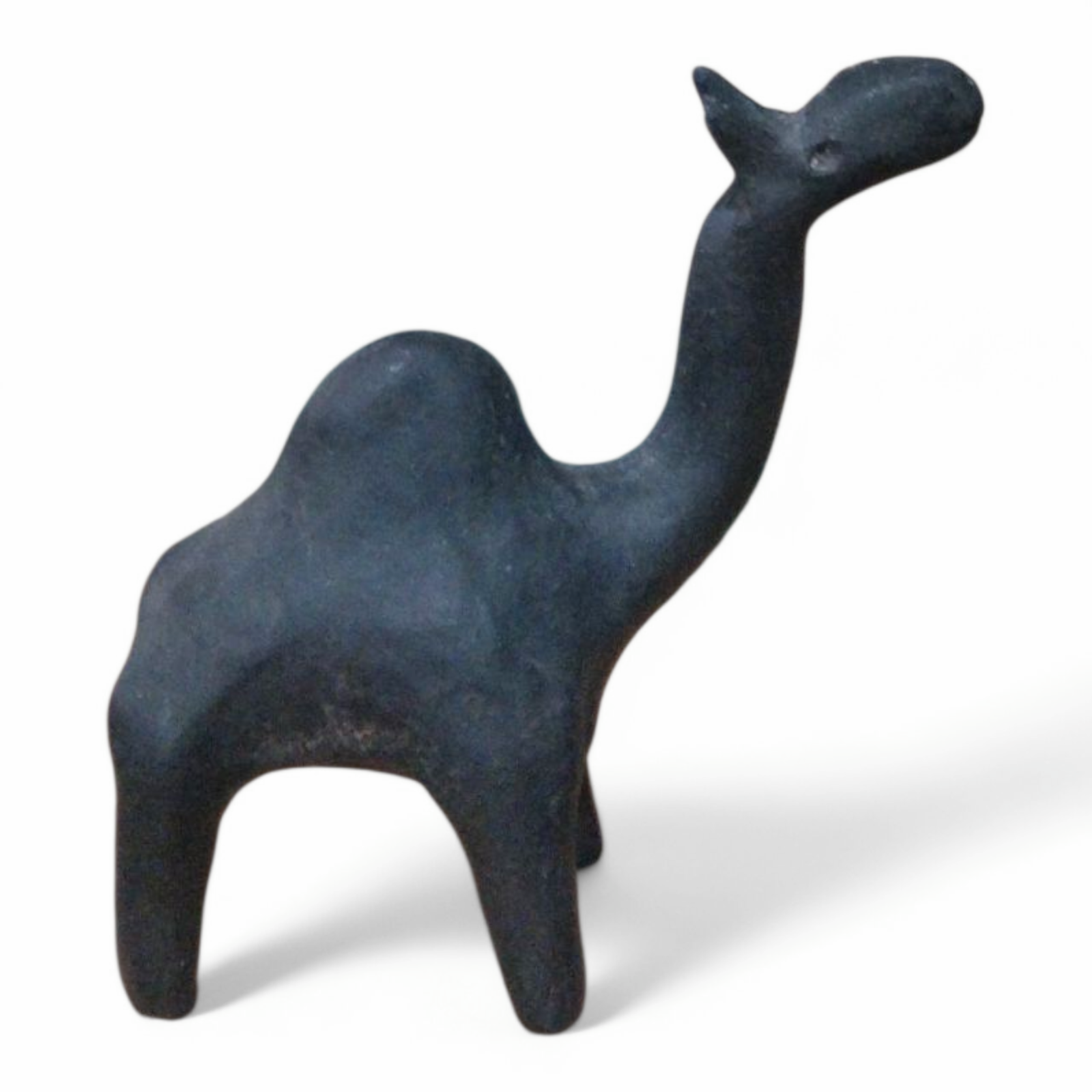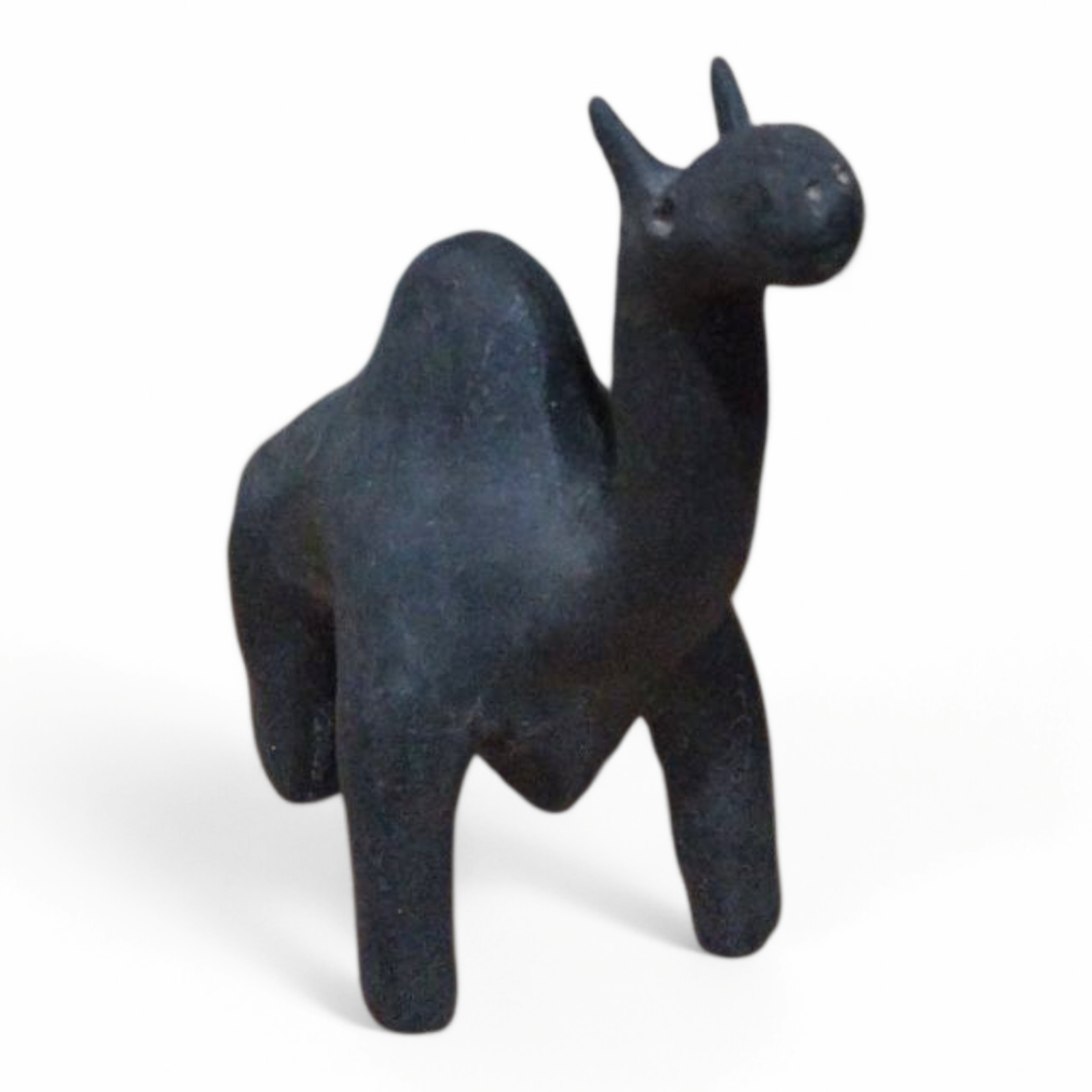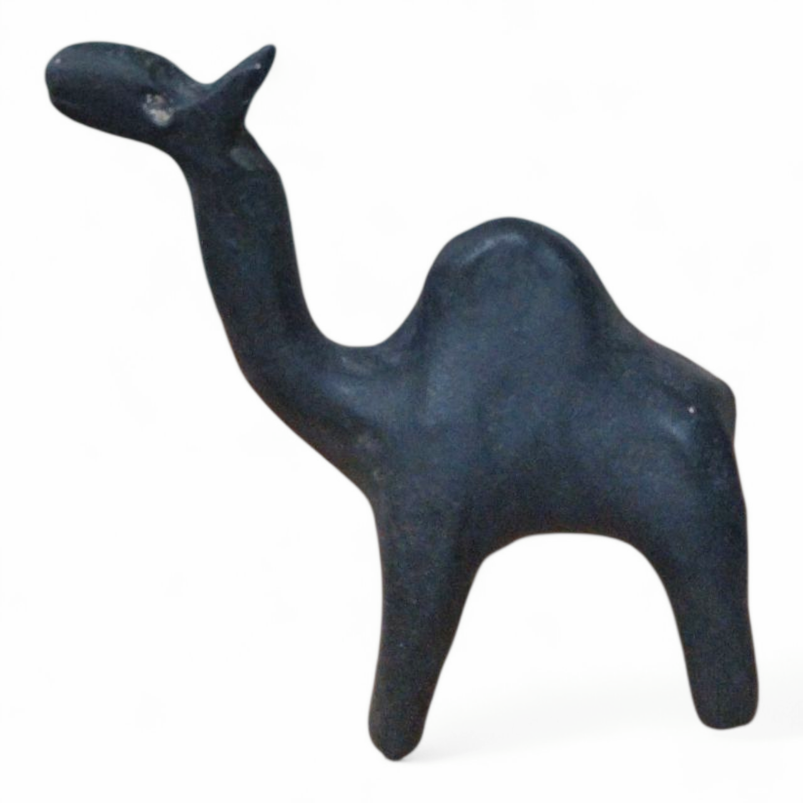 - This mystic black ceramic camel is a striking handcrafted sculpture that adds a touch of elegance and intrigue to any space.