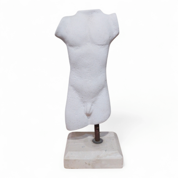 - Inspired by Cycladic forms,this male torso sculpture emphasizes balance,proportion,and sculptural simplicity.The fragmented body and reduced detail draw attention to form and volume,creating a timeless and contemplative presence.