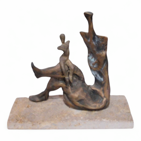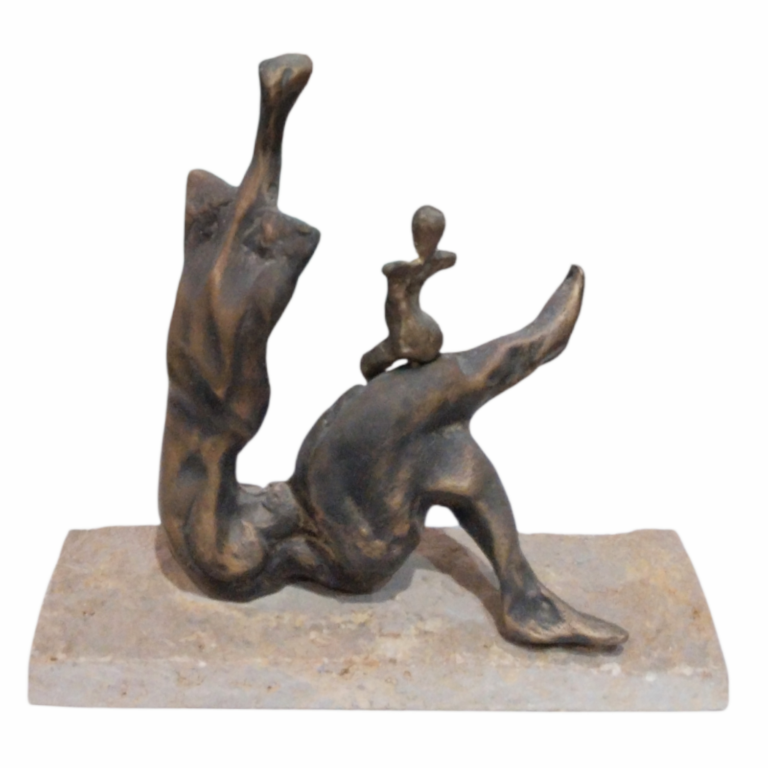 • The piece features a stylized seated mother and child  with an artistic, fluid silhouette crafted from solid bronze,with subtle patina-style variations,and mounted on a solid marble base for stability and contrast.