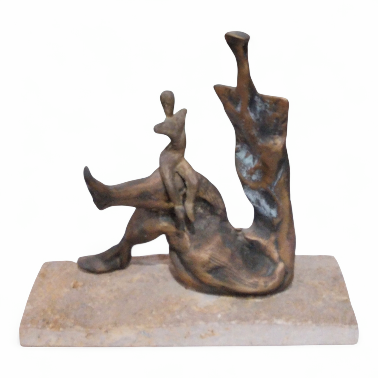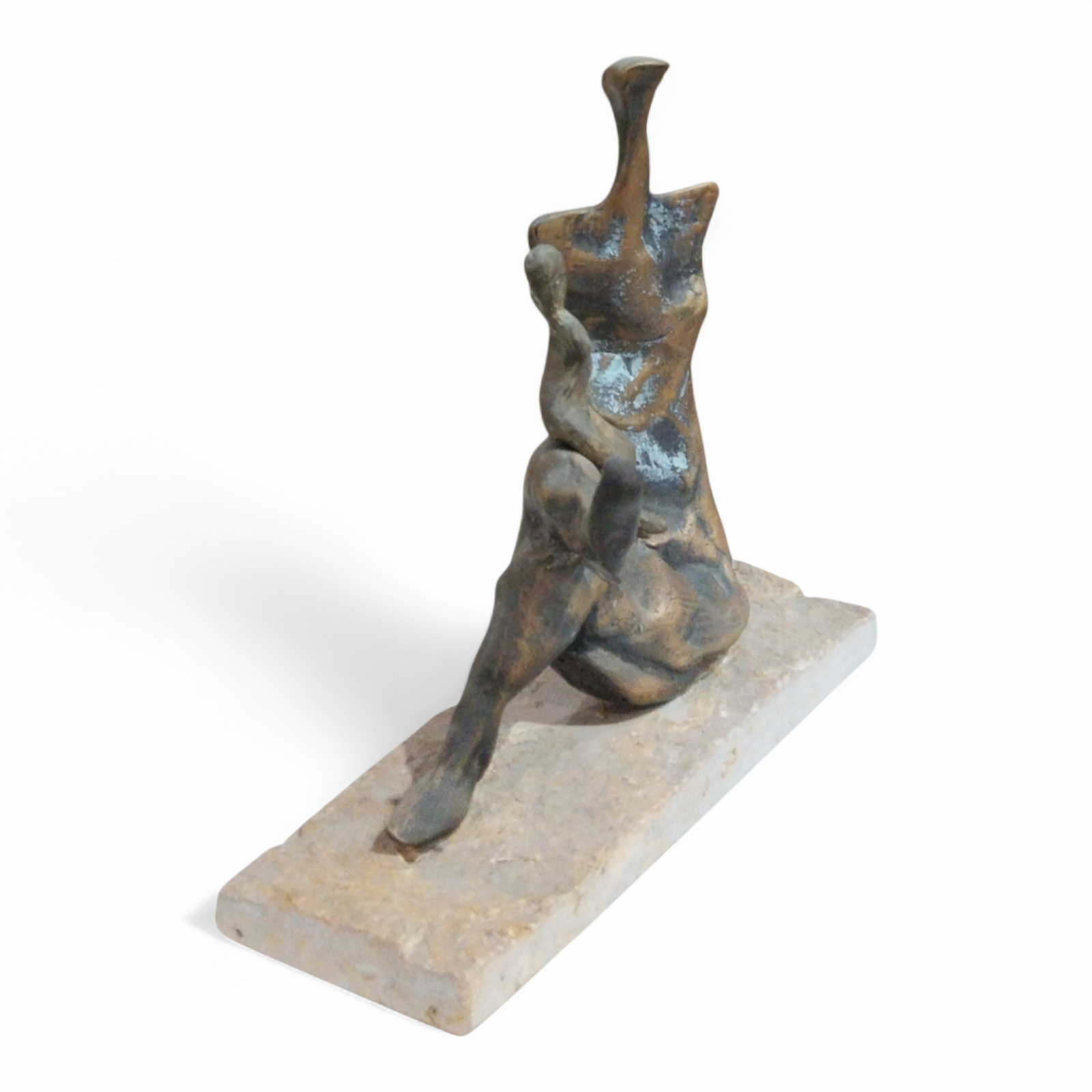 Abstract Seated Mother&Child Bronze Sculpture on Marble Base – Modern Figurative Art