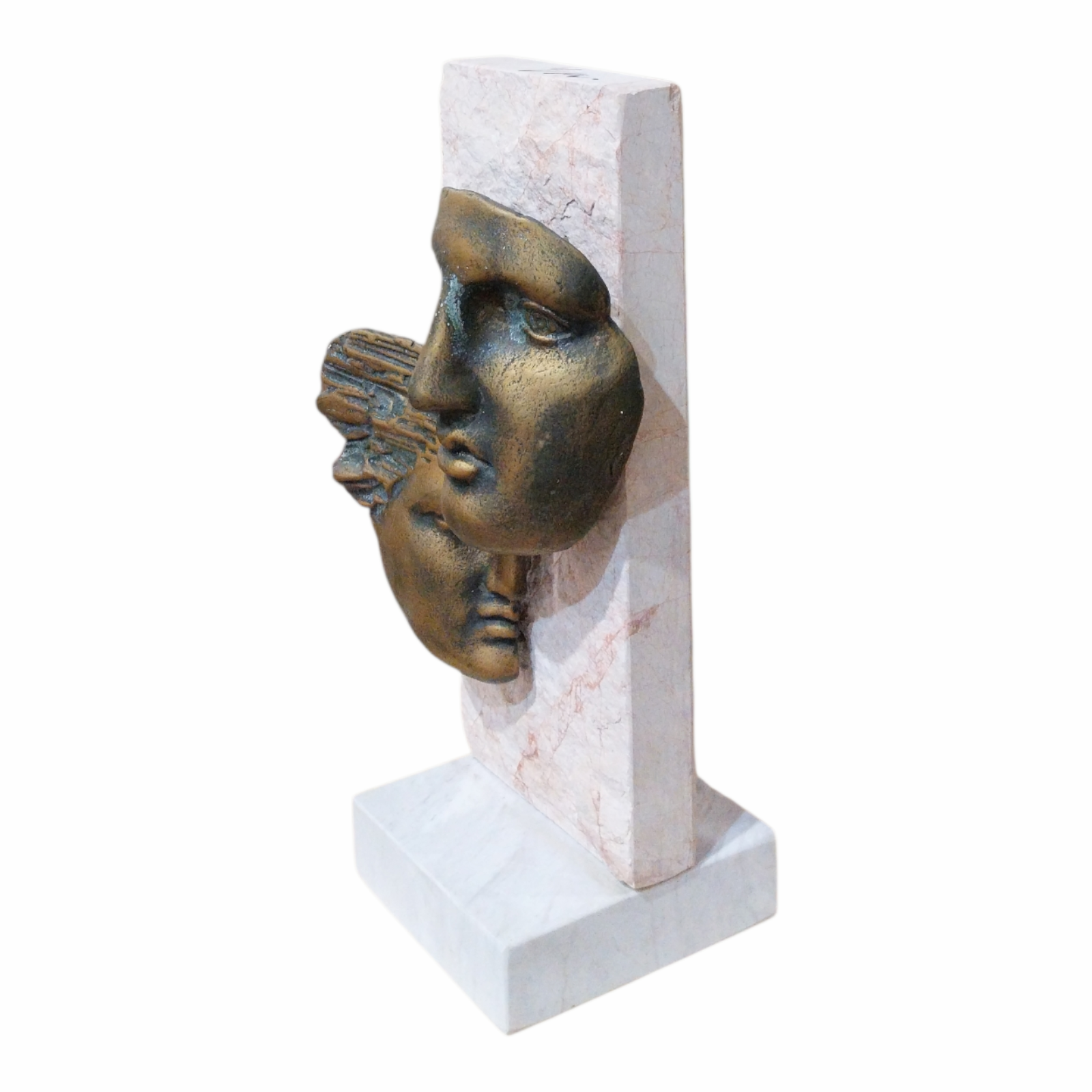 - This refined bronze sculpture depicts a couple in quiet dialogue,expressed through two sculpted faces with a strong sense of balance and connection.