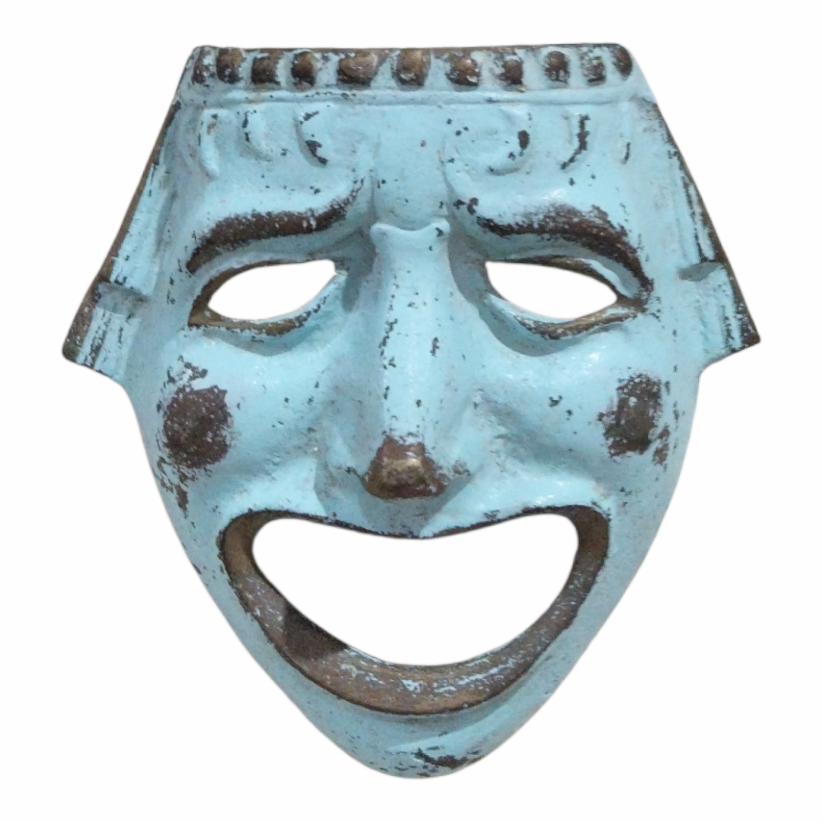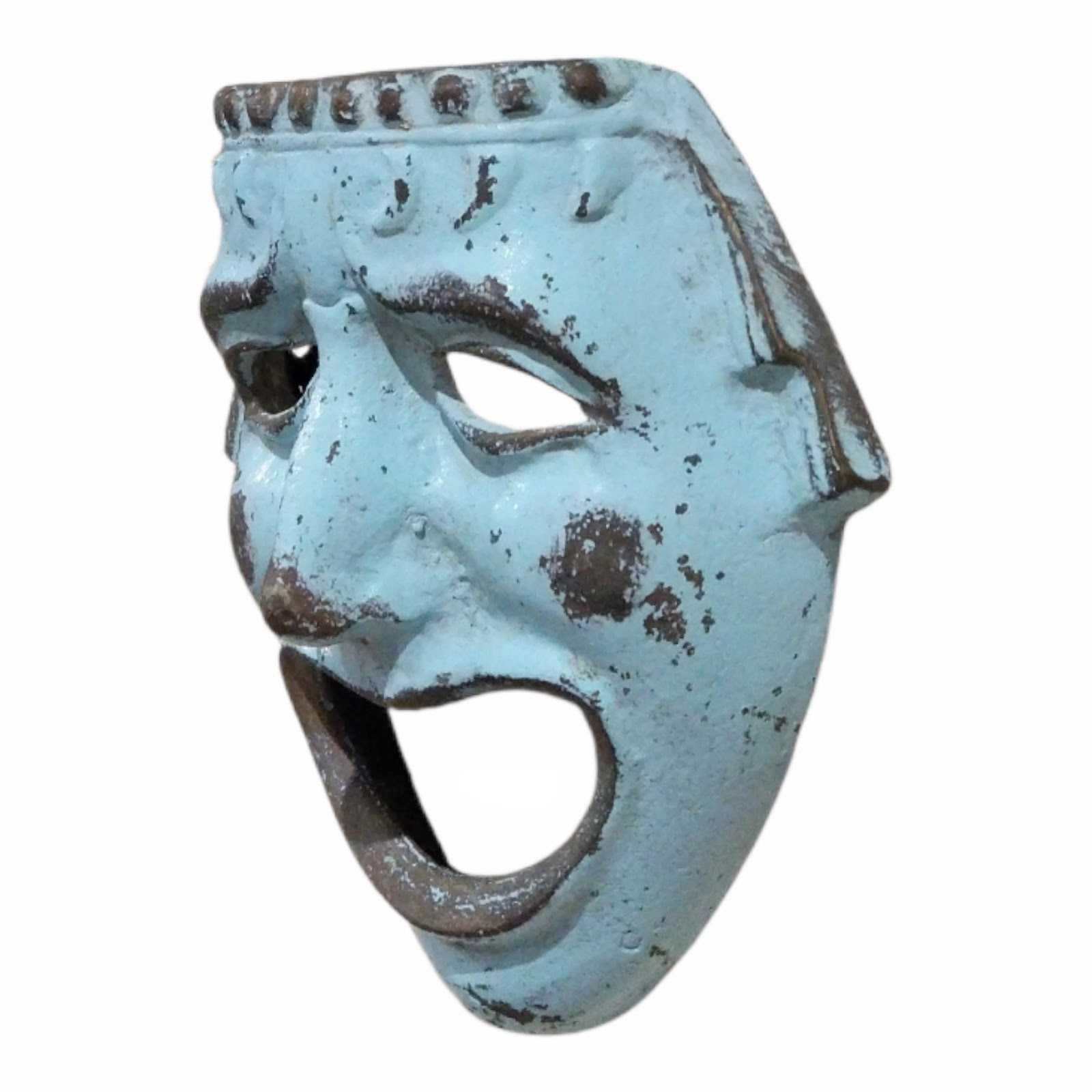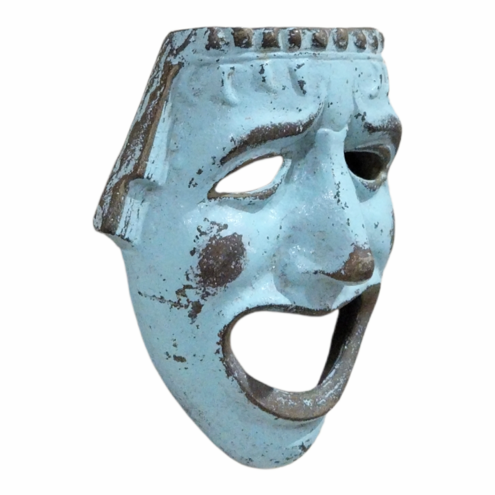 Ancient Greek Bronze Mask Sculpture – Classical Theater Decor