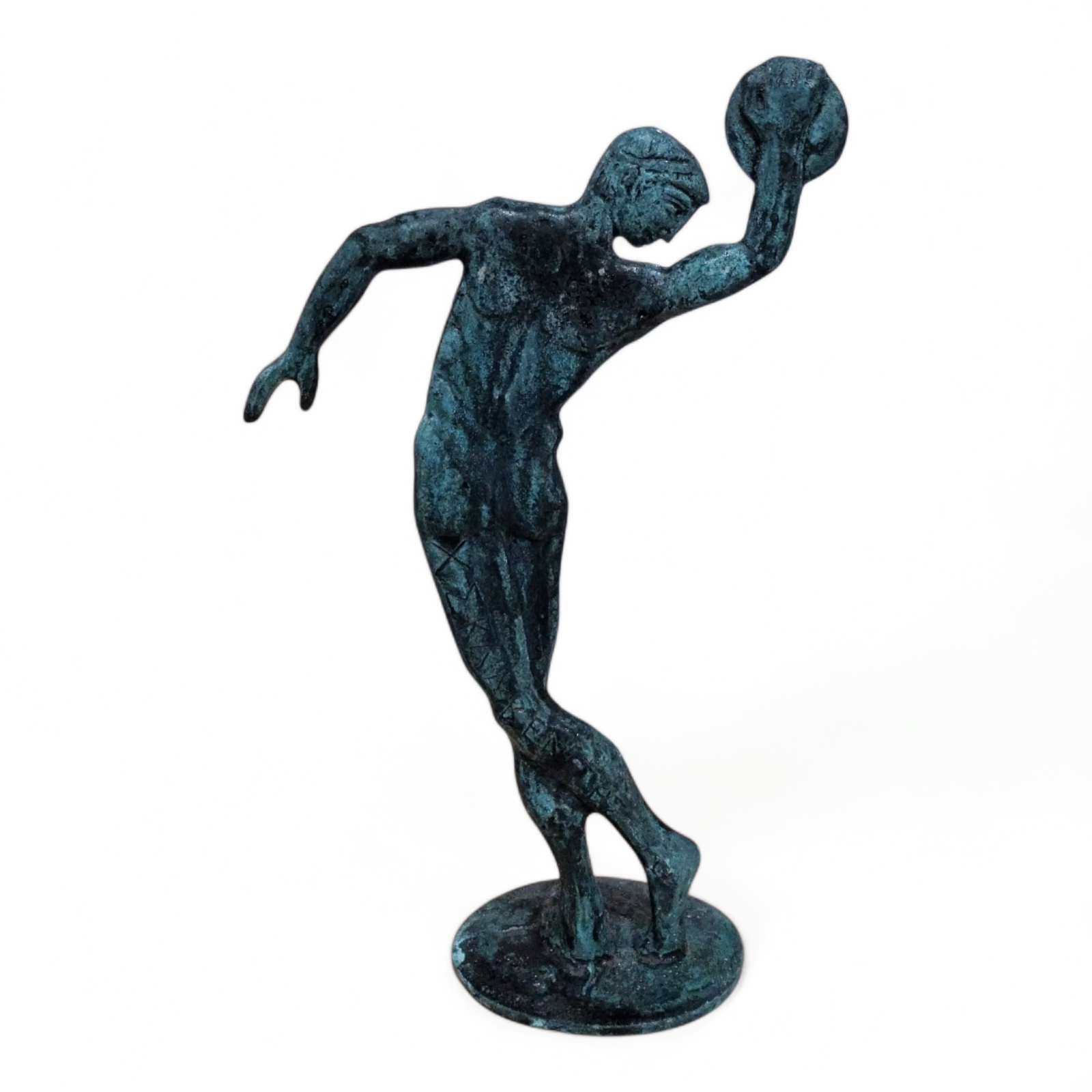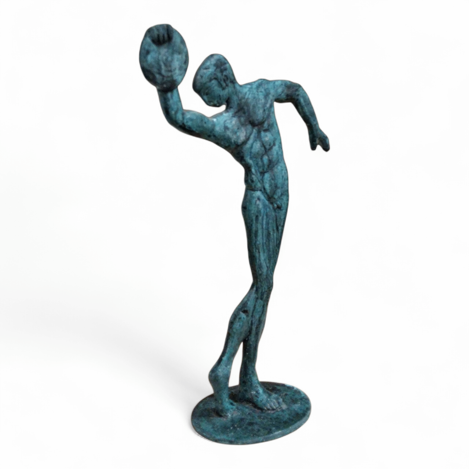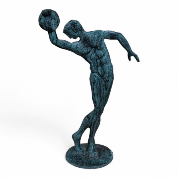 - This medium-sized bronze Discobolus sculpture presents the athlete in a fluid,forward-leaning pose,emphasizing movement,control,and physical harmony.