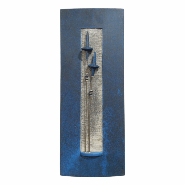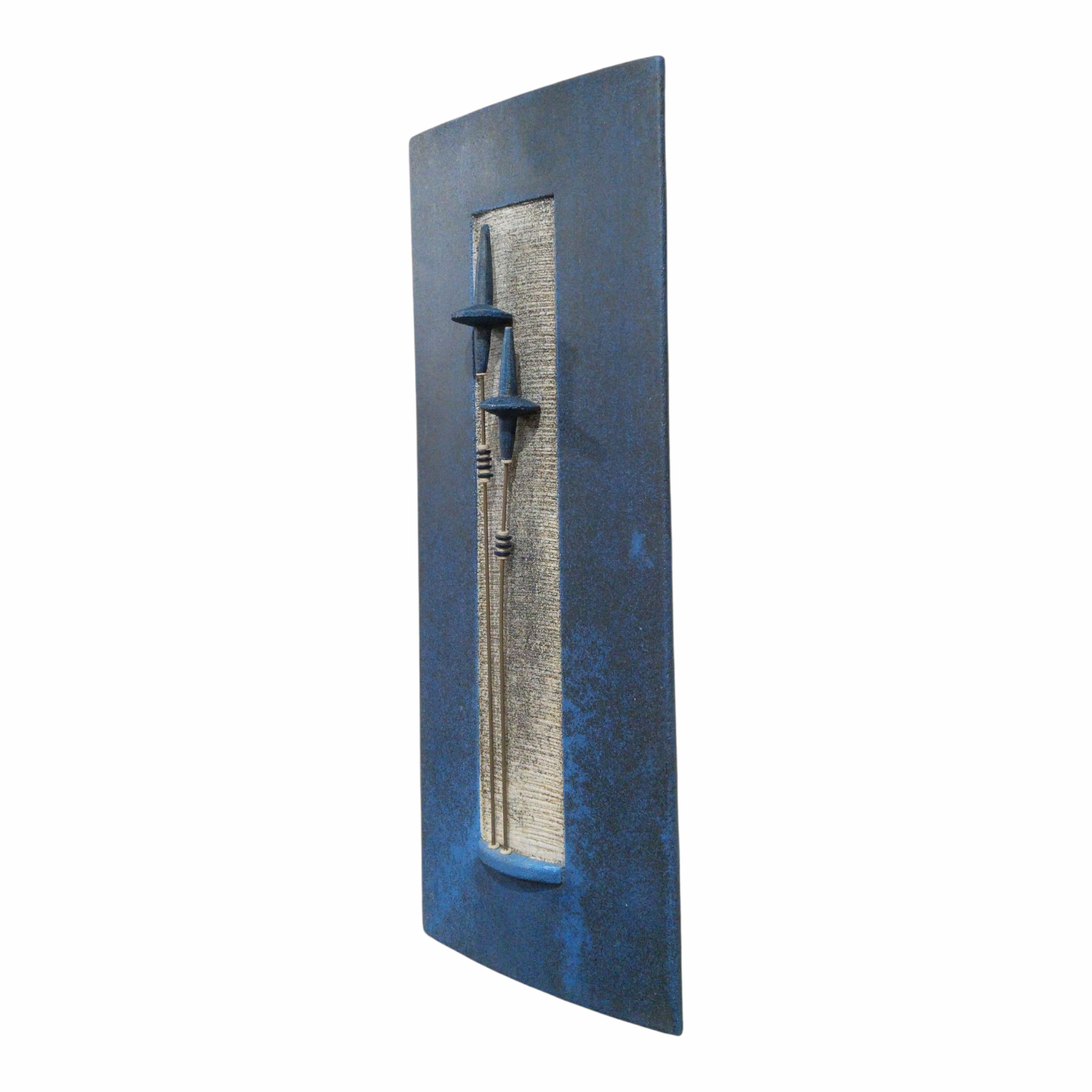 - This handcrafted ceramic wall art piece in rich blue is adorned with two striking blue flowers.