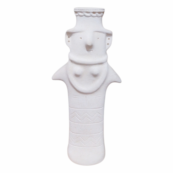 - This Cycladic-inspired plaster figurine depicts an abstract female form with simplified geometry and symbolic detailing.The stylized body and mnimal facial features echo the timeless language of Cycladic art,creating a calm and conyemplative presence.