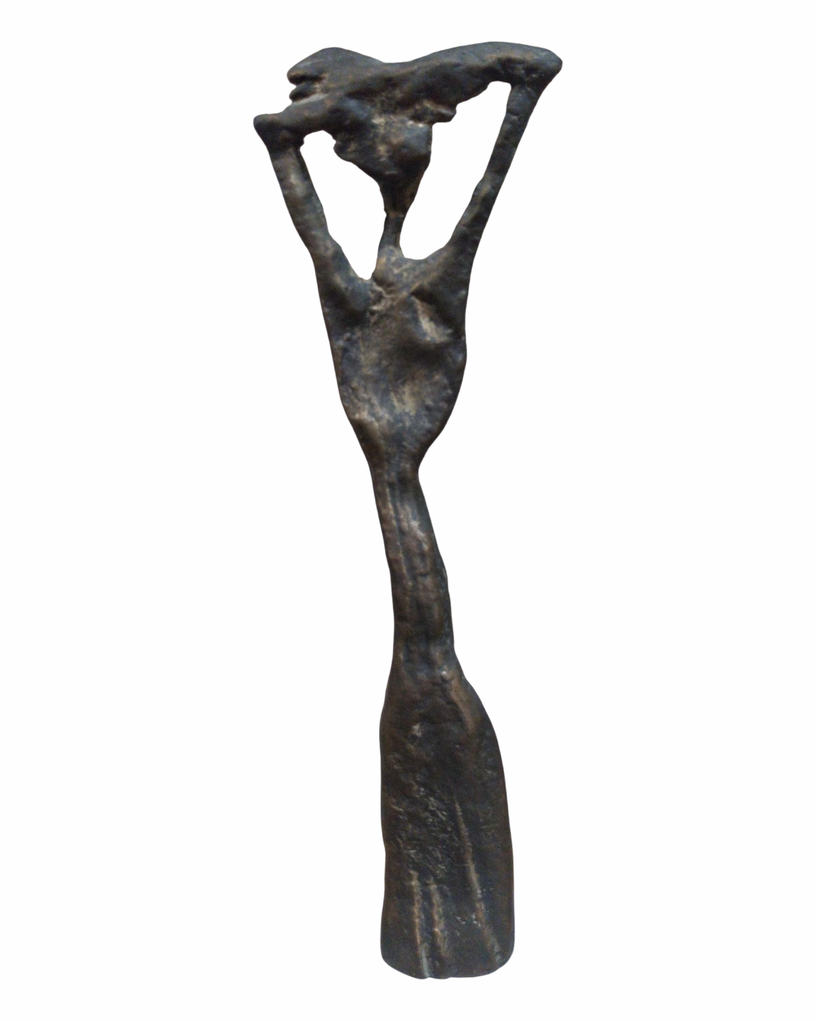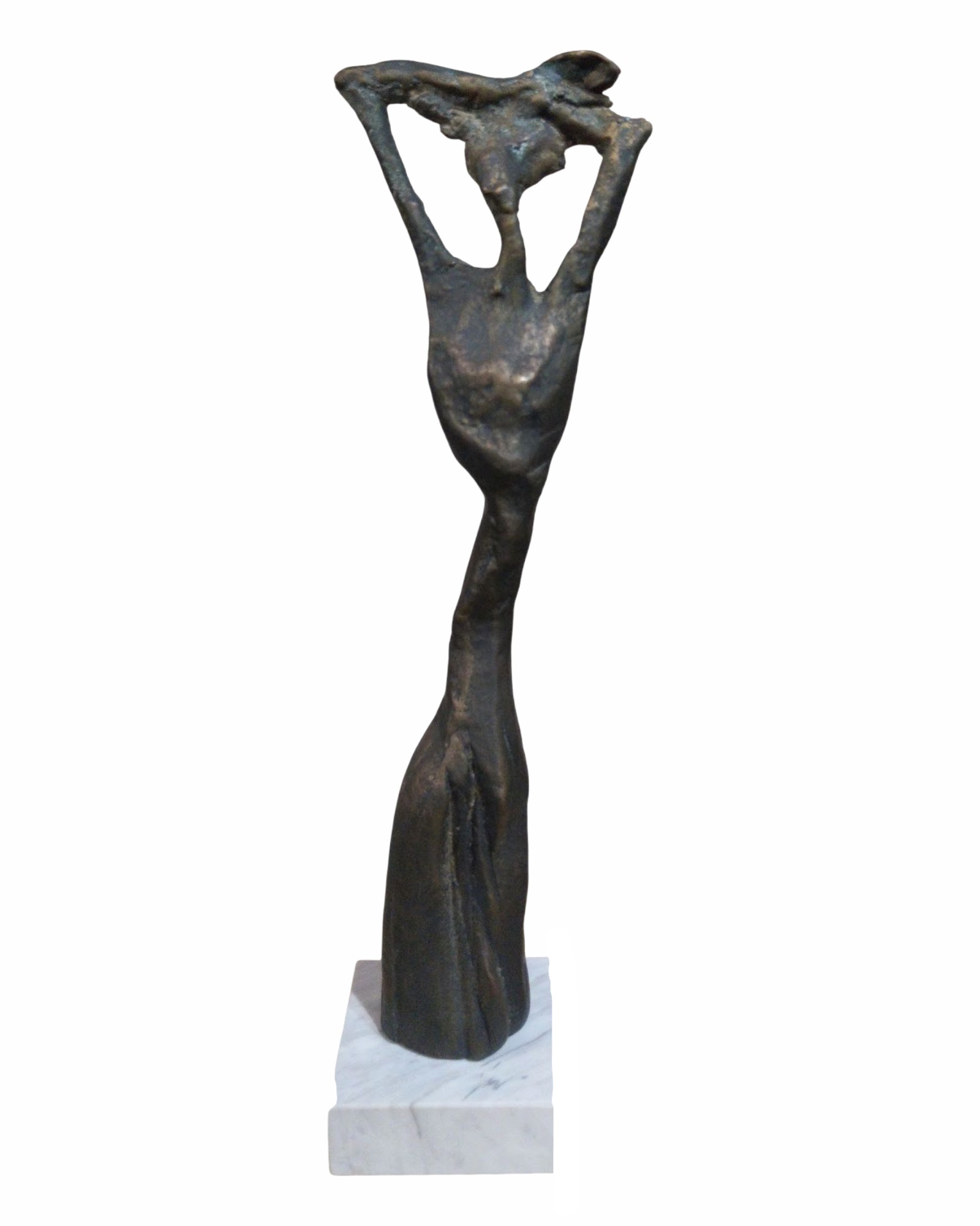 - This elegant bronze female sculpture captures a moment of stillness and inner expression,where form speaks without words.The elengated figure conveys quiet strength and balance,inviting contemplation and emotional depth.