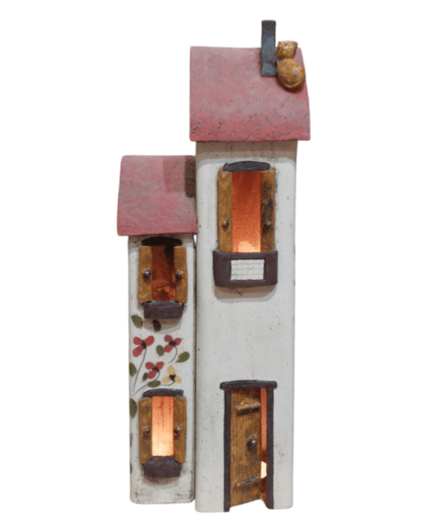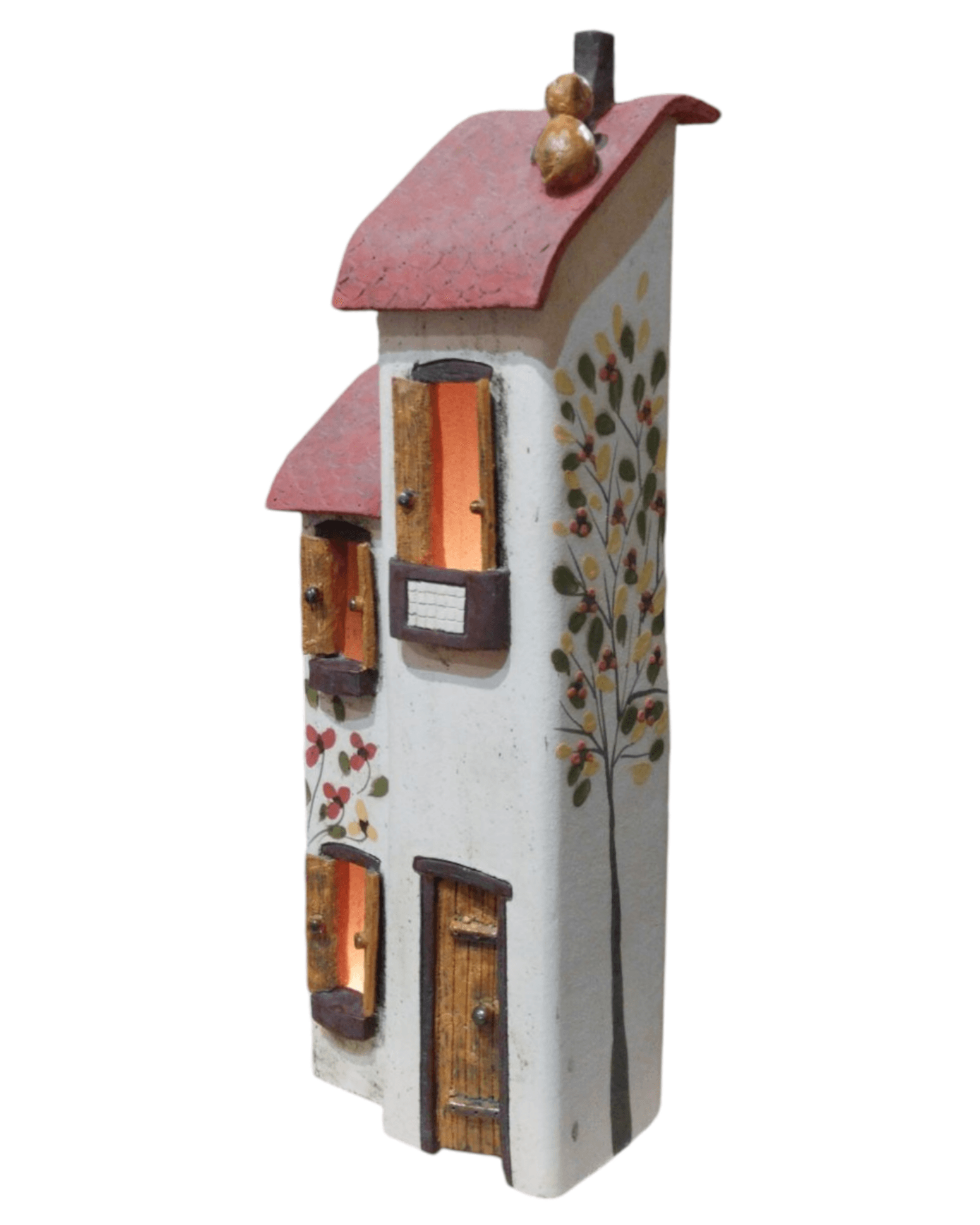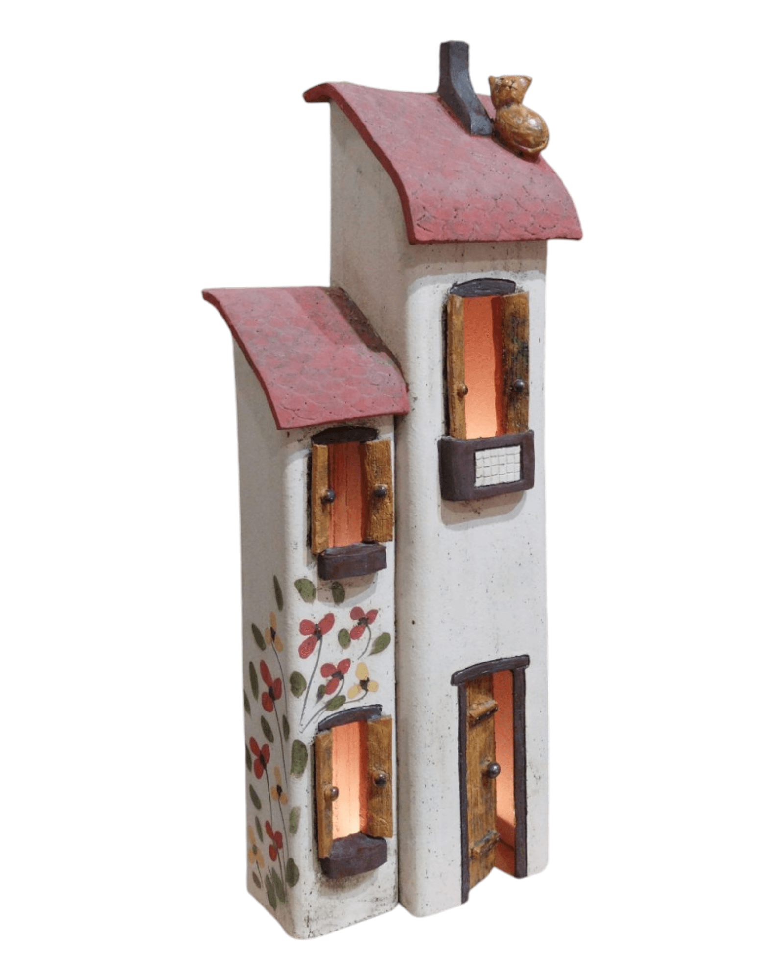 - This handmade ceramic house is a quiet,narrative piece inspired by the warm of lived-in spaces,formed as two connected houses-one larger and one smaller.