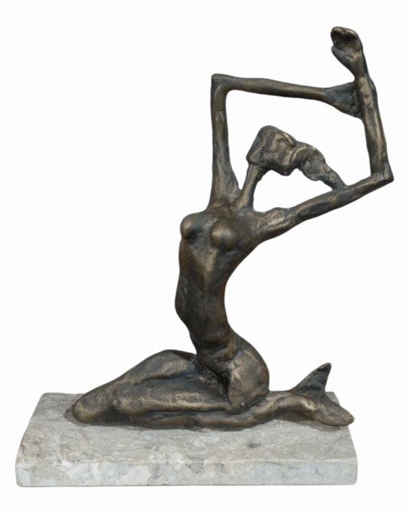 - Crafted in bronze,the sculpture is elegantly mounted on a solid marble base,adding contrast,stability,and refinement.A striking statement piece for collectors of contemporary art and sculptural decor.