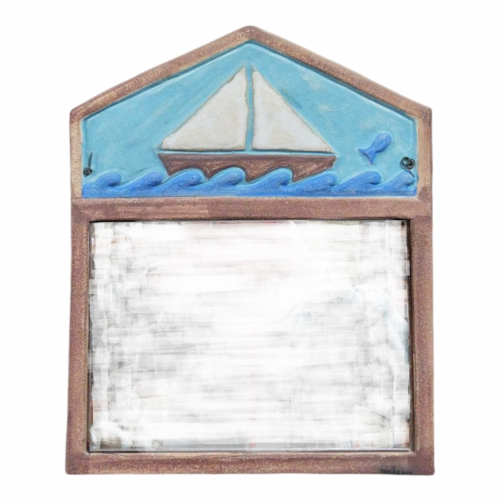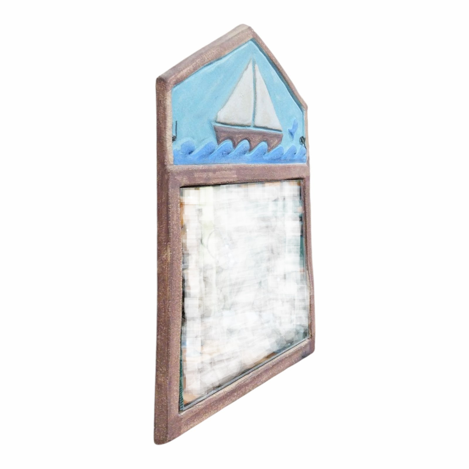 Nautical Ceramic Wall Mirror with Sailing Boat