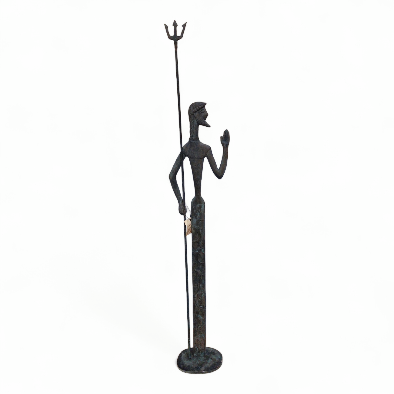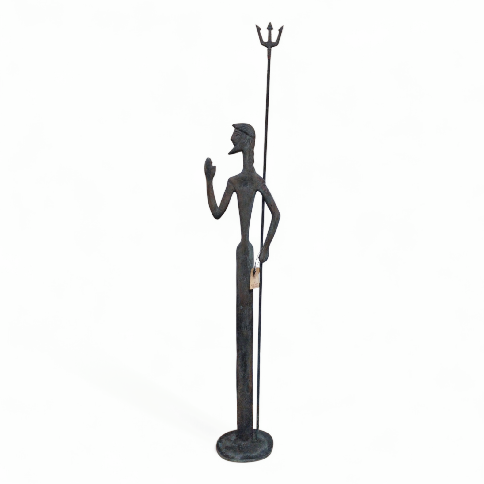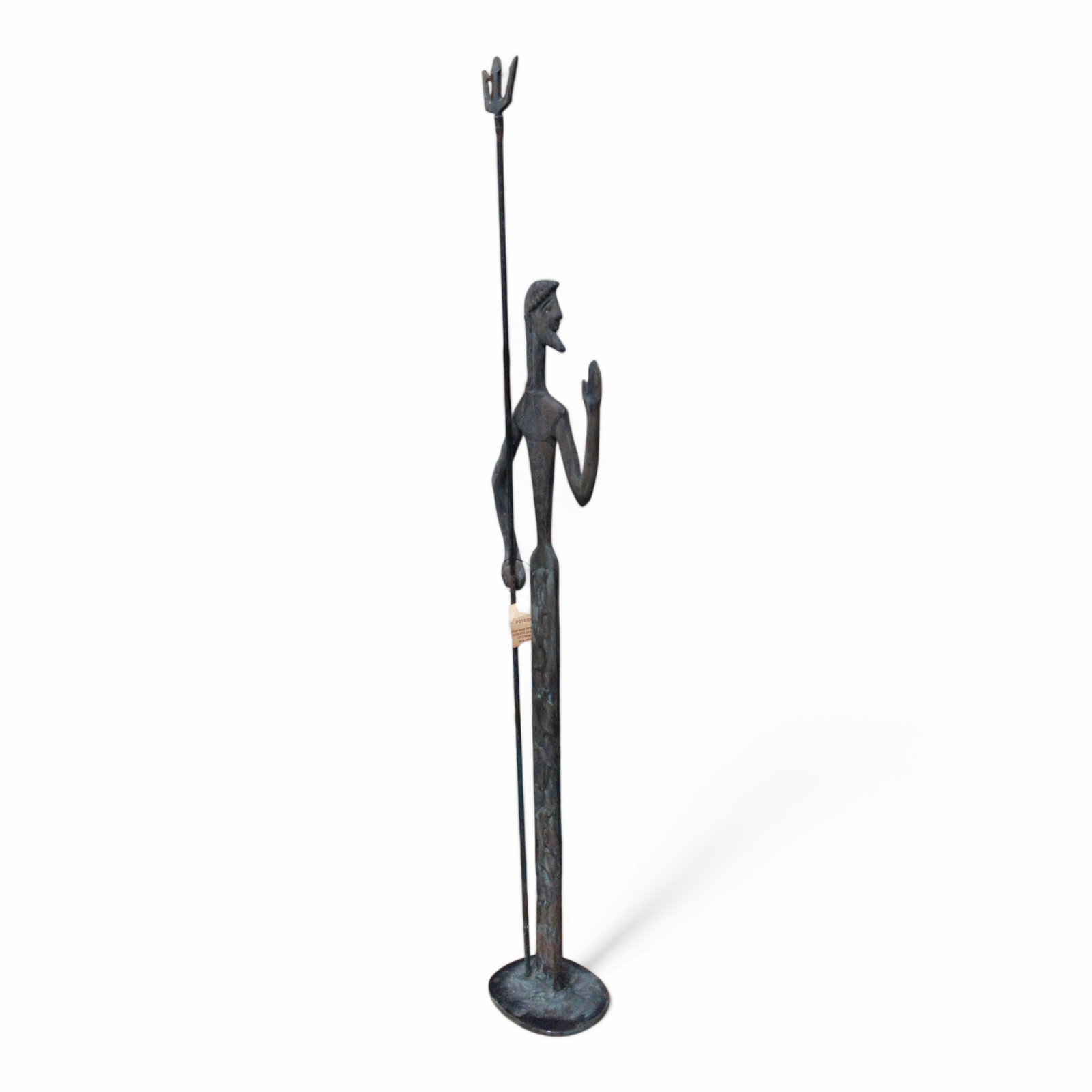 • This bronze statue depicts Poseidon,the god of the sea in Greek mythology,holding his trident as a symbol of power,authority,and control over the waters.The elongated form and minimalist lines give the figure a timeless and elegant presence.