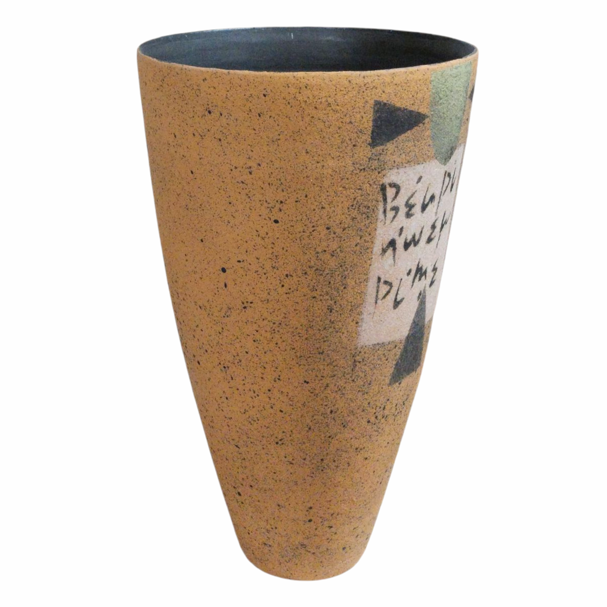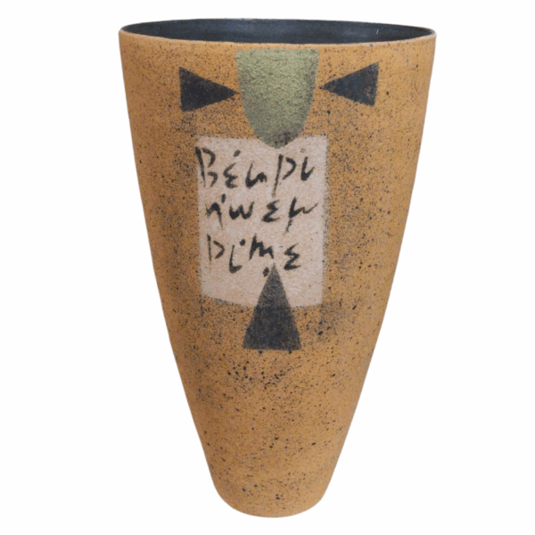 - ‘Ancient Whispers’ is an artistic ceramic vase featuring hand-painted motifs inspired by timeless symbols and earthy tones.Its smooth surface and refined form highlight the subtle,expressive markings,creating a piece that bridges contemporary design with an ancient visual rhythm.