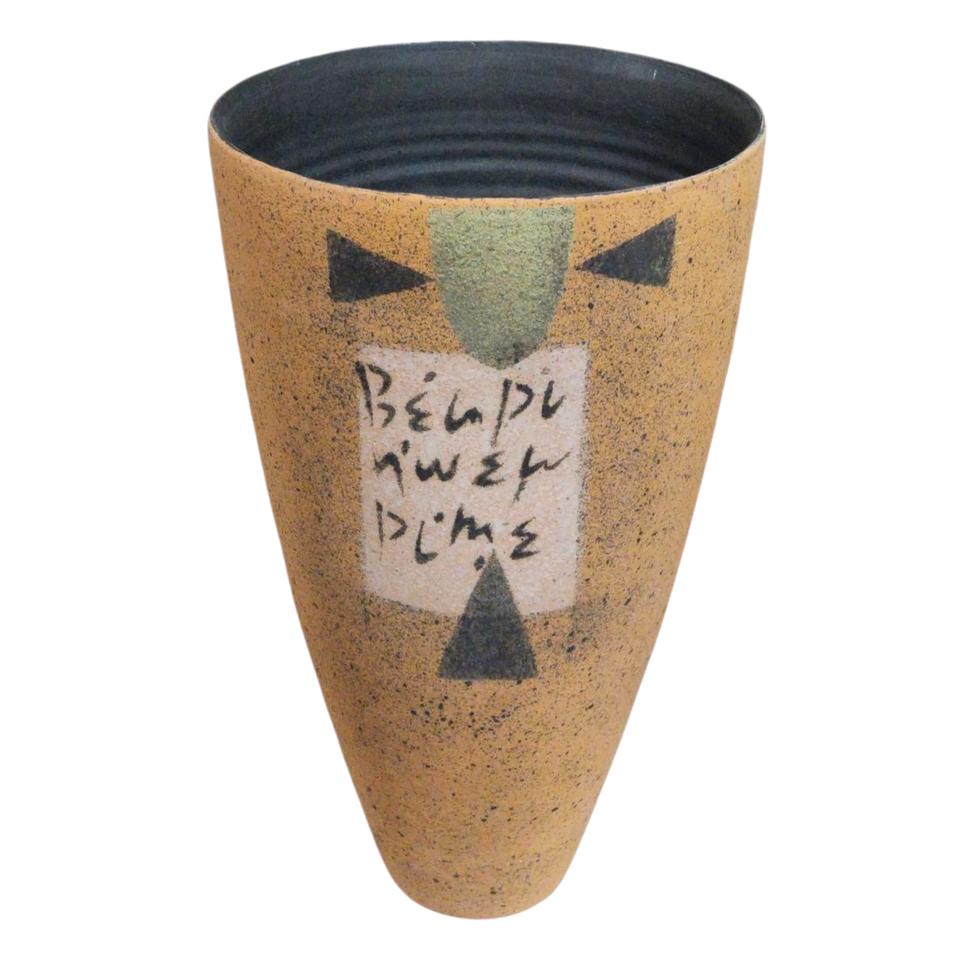 ‘Ancient Whispers’ Artistic Ceramic Vase with Painted Motifs