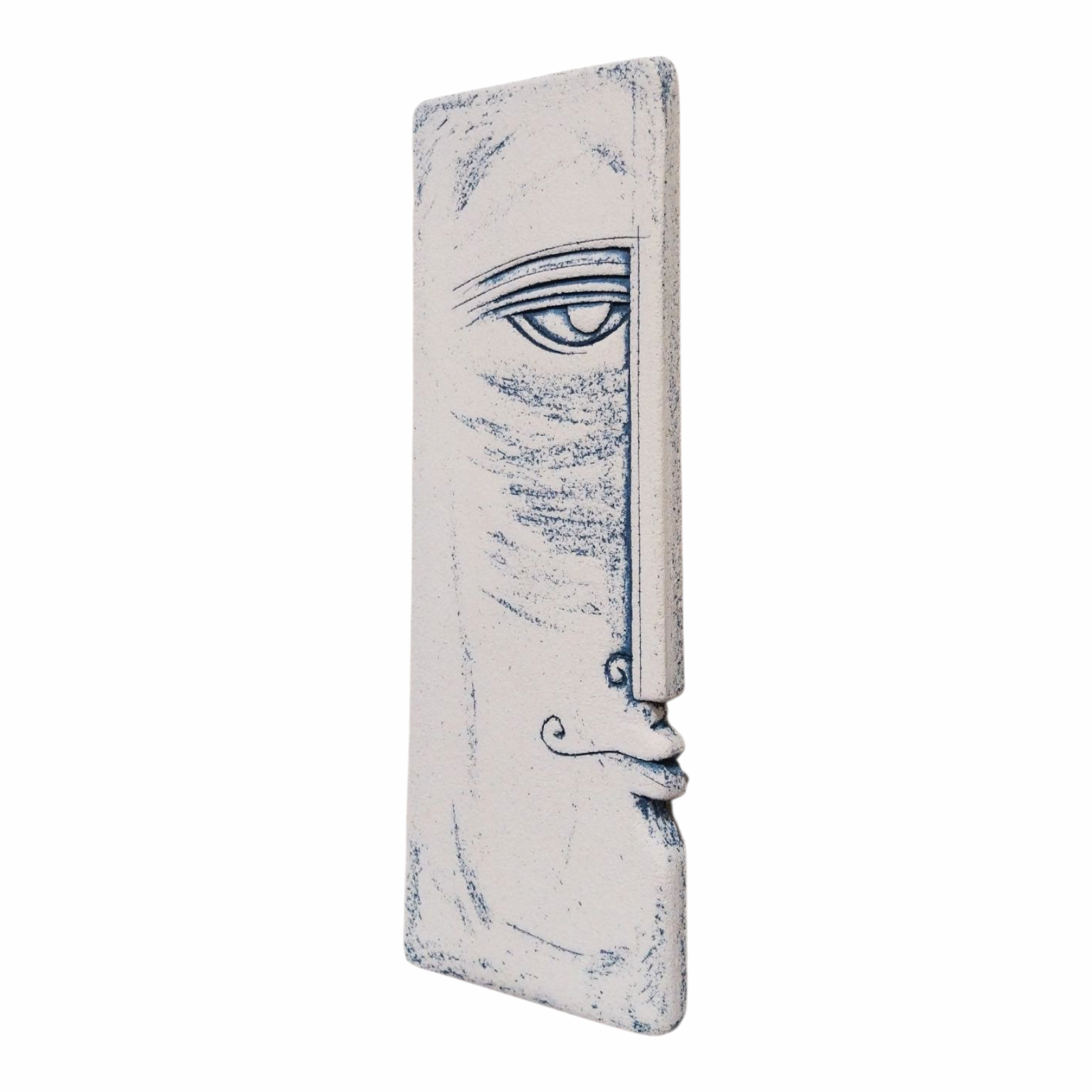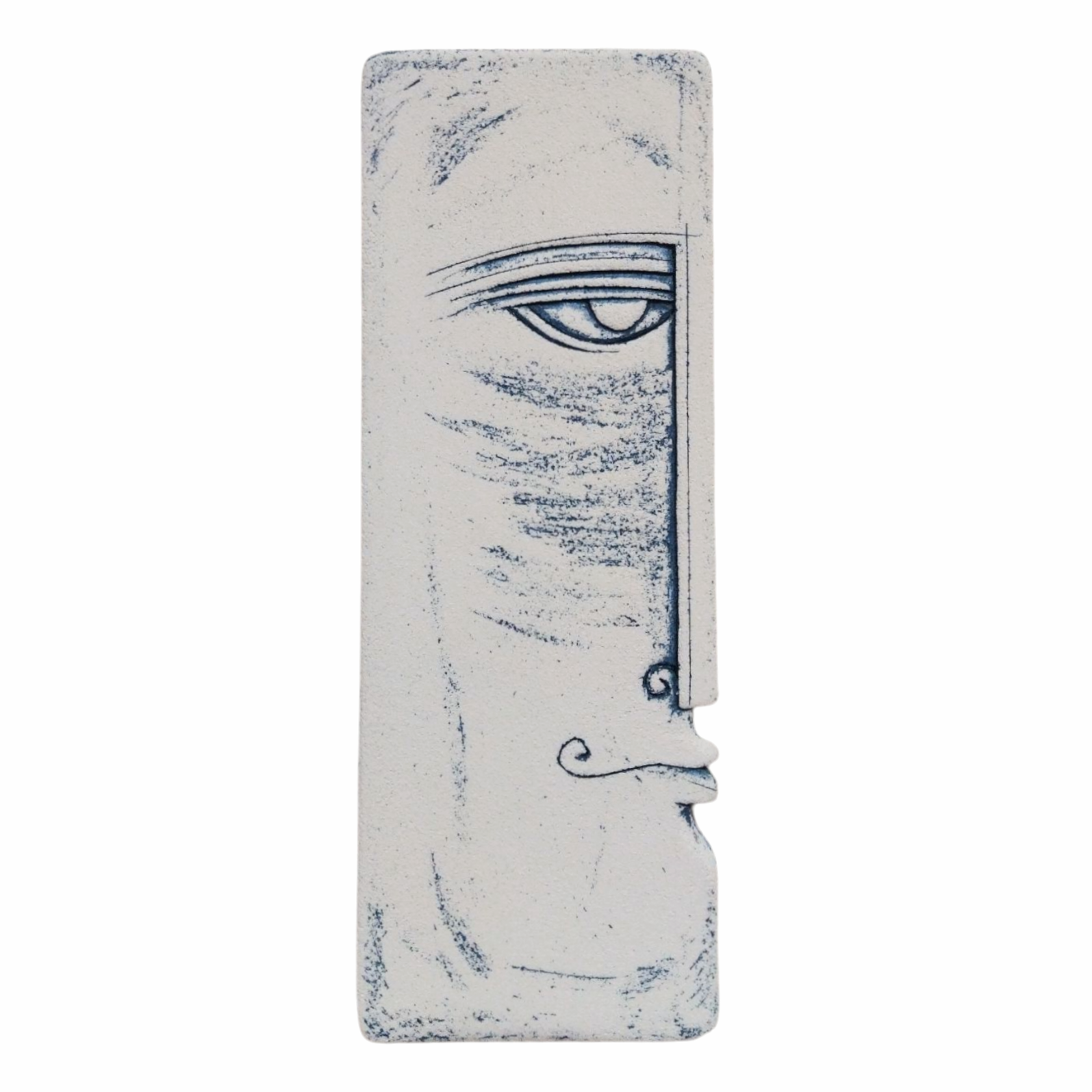 - ‘Achilles Gaze’ is a artistic ceramic wall face sculpture that captures quiet strength and introspection.Shaped in profile,the form reveals a raw,slightly rugged surface that enhances its expressive character and handmade nature.