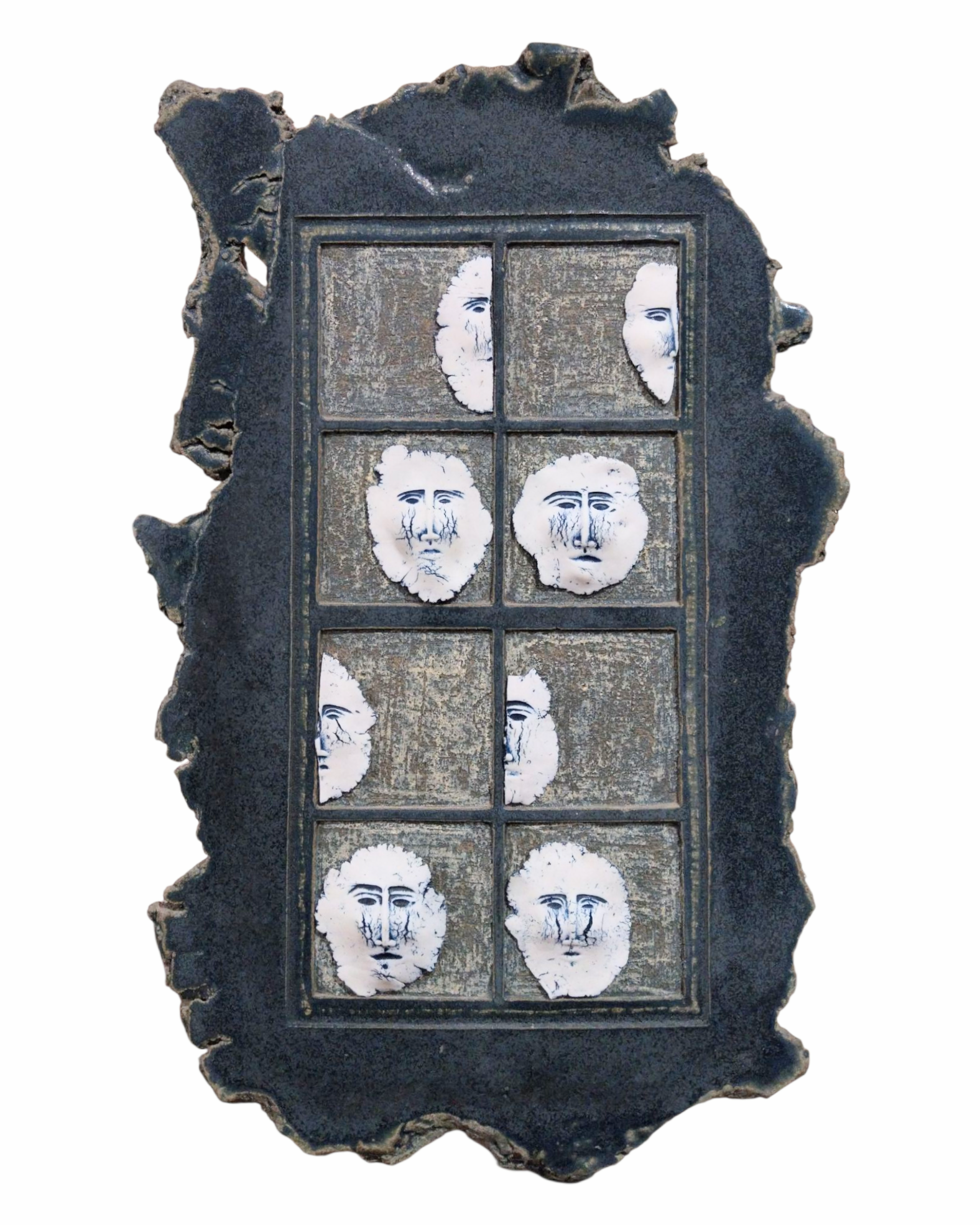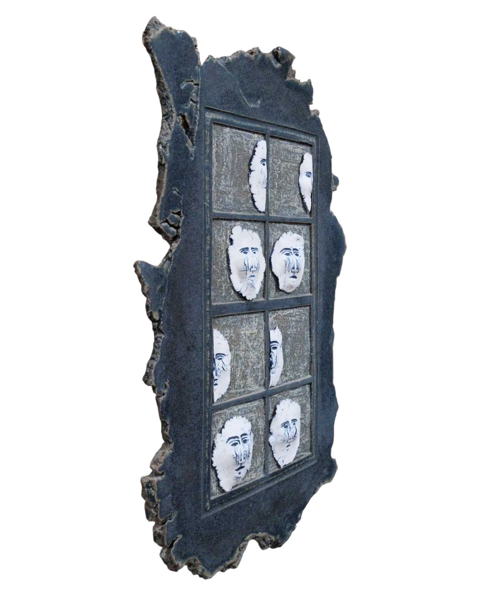 - This handmade ceramic wall art sculpture features porcelain faces peeking from behind small windows,creating a sense of mystery and quiet emotion.Designed as a unique ceramic wall decor piece,it invites the viewer to imagine the hidden stories behind each face.